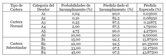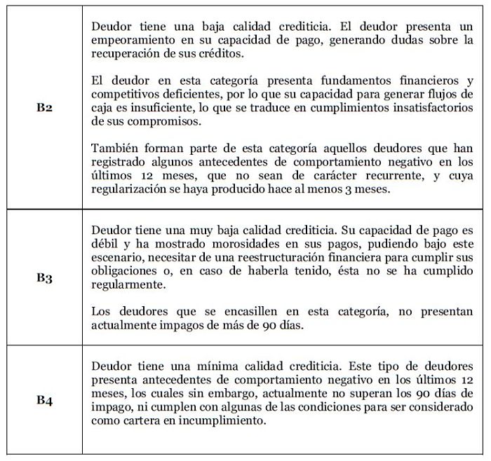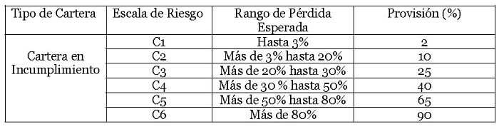 de la "Cartera en Incumplimiento" y aquellos que deben encasillarse en las