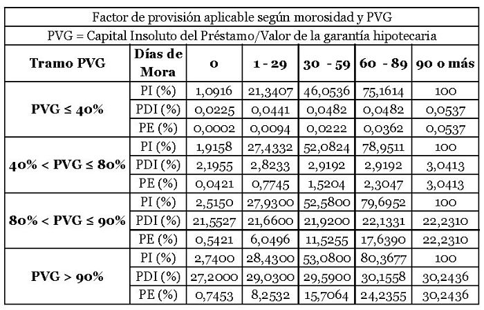 método estándar para constituir provisiones sobre créditos hipotecarios para