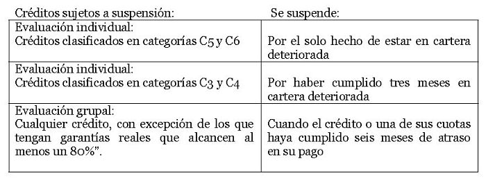 créditos sujetos a evaluación individual, incluyendo ciertas condiciones que