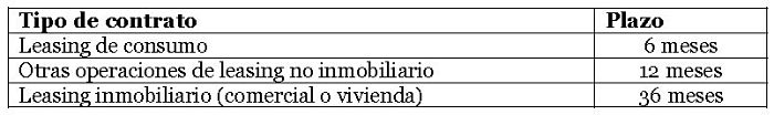 de leasing que se indican en el numeral siguiente, deben efectuarse frente a las