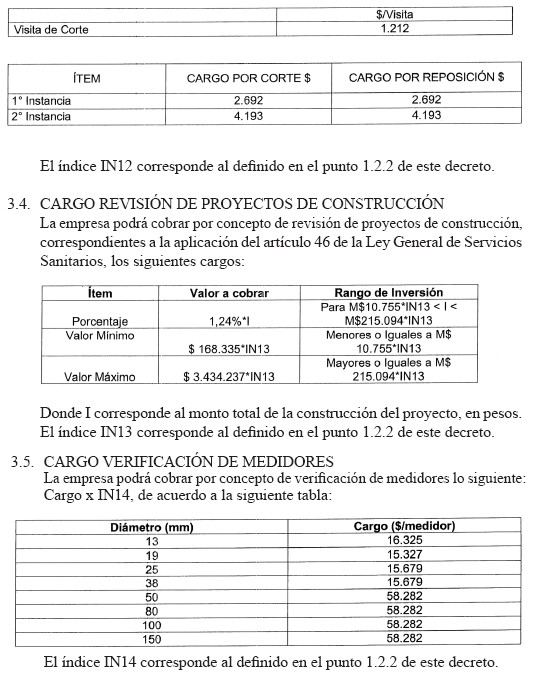 Si la disposición de aguas servidas se realiza con tratamiento de aguas servidas, el cargo CV8 se incrementará en 325,04 pesos por metro cúbico facturado.