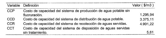 Cuando la disposición de aguas servidas se realiza con tratamiento de aguas servidas, el costo de capacidad del sistema de disposición CCT se incrementará en 4.002,47 pesos por metro cúbico.
