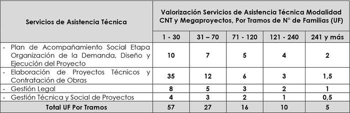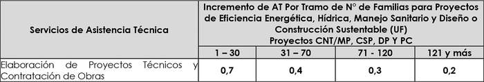 Artículo 2º.- DE LOS SERVICIOS DE ASISTENCIA TÉCNICA PARA PROYECTOS DE CONSTRUCCIÓN EN NUEVOS TERRENOS (CNT) Y MEGAPROYECTOS (MP), CONSTRUCCIÓN EN SITIO PROPIO (CSP), DENSIFICACIÓN PREDIAL (DP) Y PEQUEÑOS CONDOMINIOS (PC)