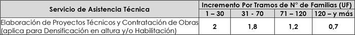 D.O. 06.06.2023ndose de proyectos individuales emplazados en Territorios Especiales o Localidades Aisladas, el Serviu adicionará 12 UF más para la ejecución de los servicios de asistencia técnica, consignados con los números 1), 2) y 3), de la tabla anterior. 6 UF se cancelarán contra la obtención de los productos señalados en los numerales 1) y 2) de la tabla precedente, Verificación del Estado Situación del Inmueble y el Terreno y, Elaboración de Proyectos de Arquitectura, Loteo y Urbanización y, las 6 UF restantes, contra la obtención de los productos señalados en el numeral 3) de la tabla precedente, esto es Recepción y Aprobación de los Informes correspondientes y Recepción conforme de Serviu y de la DOM de la vivienda, e inscripción de las prohibiciones y gravámenes en el CBR.