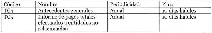 Circular; iv) se cambia el plazo de entrega y el formato del formulario TC3, con