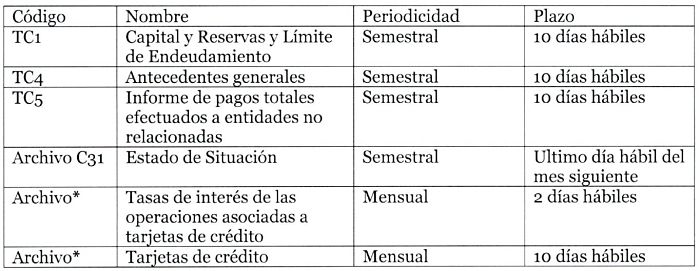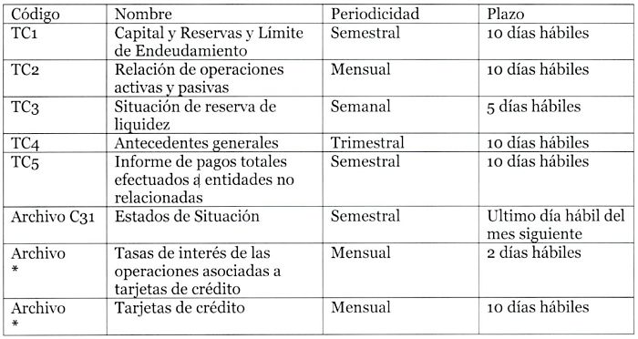 PLAZO DE ENTREGA A SUPERINTENDENCIA : Ultimo día hábil bancario del mes siguiente