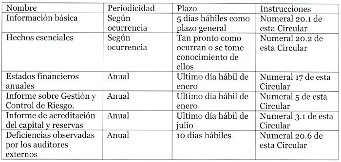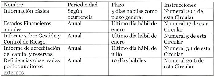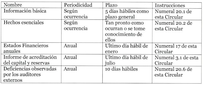 en el numeral 20.3 de esta Circular. Además, se enviará referido al 31 de