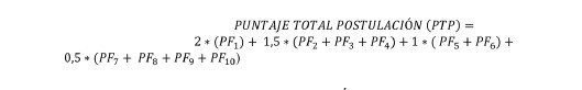 Artículo 6º.- Para obtener el Puntaje Total de Postulación (PTP) de una determinada iniciativa postulada, el puntaje de cada factor deberá ser multiplicado por los respectivos coeficientes de acuerdo a la siguiente fórmula: