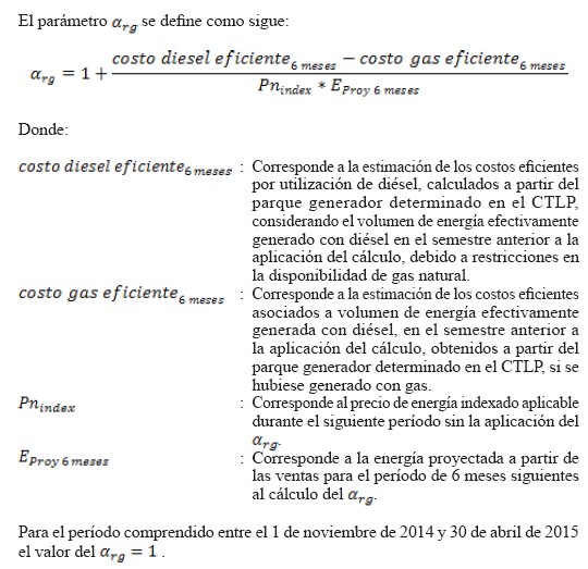 En caso de presentarse restricciones en el suministro de gas natural para generación eléctrica en el sistema de Punta Arenas, será necesario aplicar un factor de corrección, para el cálculo del precio de la energía a través del parámetro que multiplique el precio de la energía base. Este parámetro será calculado y comunicado por la Comisión, una vez que sea instruido por la autoridad competente. Asimismo, la Comisión comunicará los nuevos valores resultantes de los costos variables totales promedio de cada una de las empresas que operen las instalaciones de generación, y que serán aplicables durante el periodo en que se presente la restricción en el suministro de gas natural.