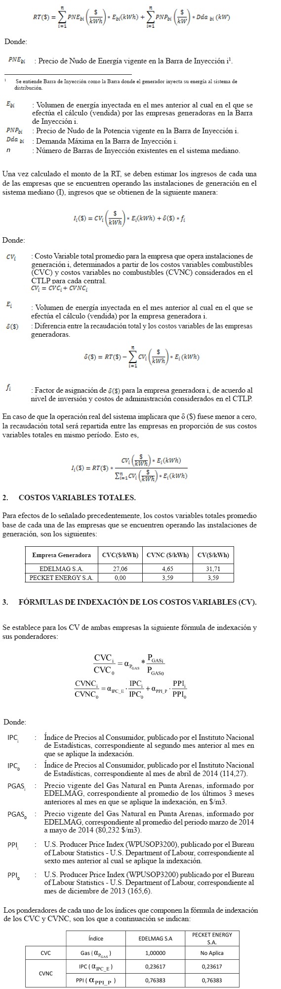 Artículo tercero: Aplícase el siguiente mecanismo de repartición de la recaudación por ventas de energía y potencia entre las empresas que se encuentren operando las instalaciones de generación en el sistema mediano de Punta Arenas: