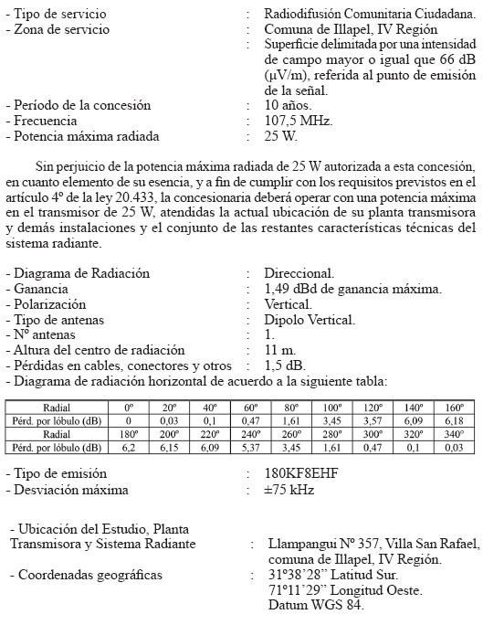 OTORGA Y MODIFICA CONCESIÓN DE RADIODIFUSIÓN COMUNITARIA CIUDADANA PARA LA COMUNA DE ILLAPEL
