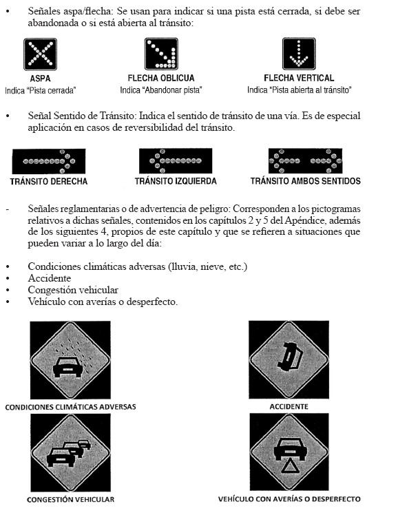 Artículo 34º: Las SMV tienen por objeto ayudar a los conductores a tomar decisiones sobre cómo alcanzar su destino, la pista por donde transitar y sobre otros factores que pueden incidir en su tiempo de recorrido y confort. Su principal aplicación se da en casos o situaciones como las siguientes: