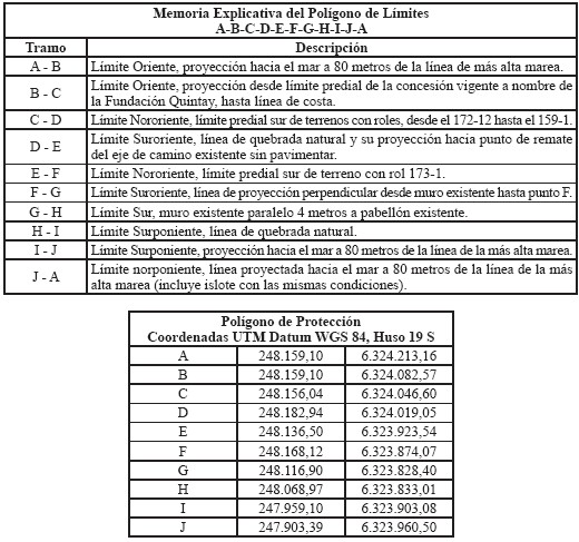 El área protegida tiene una superficie aproximada de 144.100,60 mts.2, como se grafica en el polígono con las letras A-B-C-D-E-F-G-H-I-J-A, del plano adjunto, que forma parte del presente decreto y cuyos límites son los siguientes: