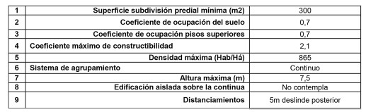 3.4.1.2 Reemplácese el cuadro de la letra b) Condicionantes de subdivisión y edificación, por el siguiente: