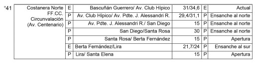 a) Reemplácese el texto de la vía Nº 41 Costanera Norte FF.CC. Circunvalación (Av. Centenario), por lo siguiente: