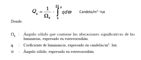3.3 Coeficiente de luminancia medio o factor de escala (Q0) normalizado: Para una superficie a iluminar, corresponde al calculado por la siguiente fórmula:
