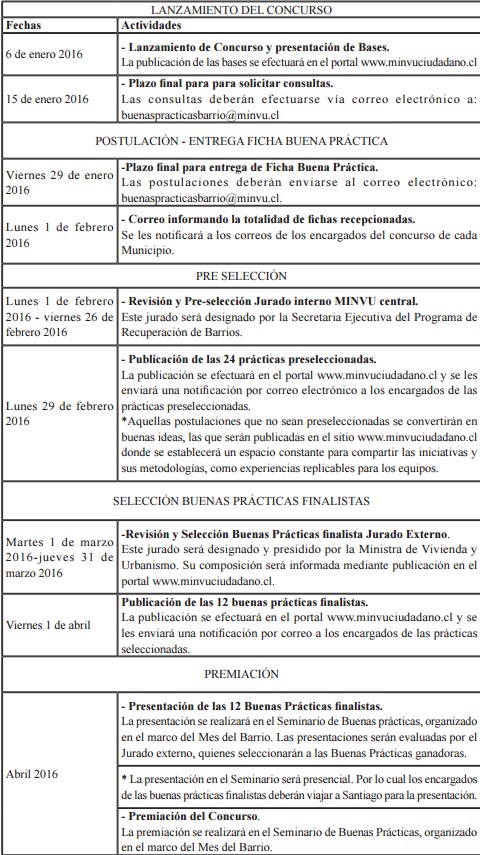 *Para cualquier información pueden llamar al teléfono (02) 29011695 - (02) 2901660, o escribir al correo buenaspracticasbarrio@minvu.cl.