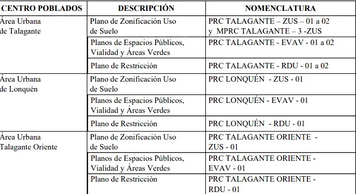 El Área Urbana de la Comuna de Talagante se divide en las siguientes zonas: