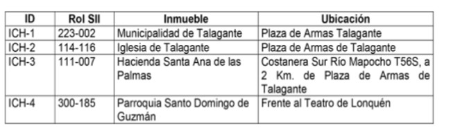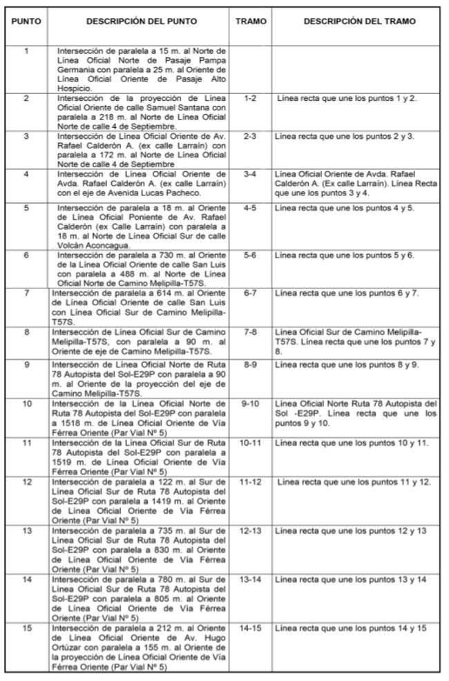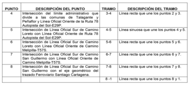 Cuadro 2: Límite Urbano Localidad de Talagante
