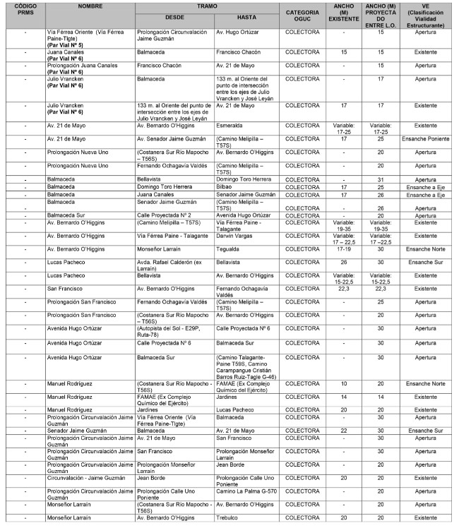 Cuadro 7: Vialidad Estructurante. Localidad de Talagante