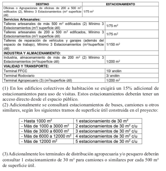Las actividades productivas de carácter industrial, las ligadas a la vialidad, transporte, los equipamientos y el uso residencial deberán contemplar las exigencias de estacionamientos que se señalan en el Cuadro 10: Normas y Estándares Mínimos de Estacionamientos.