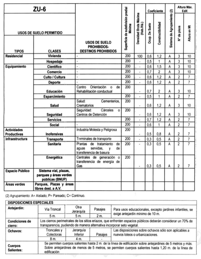 . Artículo 15 ZU - 6: Zona Urbana Residencial 6
