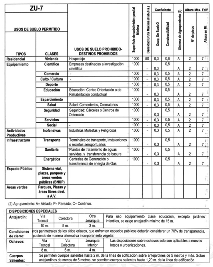 . Artículo 16 ZU - 7: Zona Urbana Residencial 7