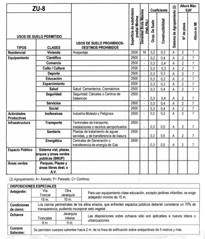 . Artículo 17 ZU - 8: Zona Urbana Residencial 8