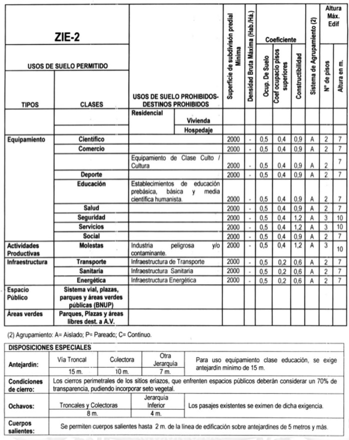 Corresponde a las instalaciones del Complejo Químico del Ejército, actual FAMAE (Fábrica y Maestranzas del Ejército), las disposiciones normativas se encuentran establecidas en el artículo 8.2.2 de la Ordenanza del Plan Regulador Metropolitano de Santiago, en atención a las facultades que le competen de acuerdo al artículo 2.1.7 inciso 3 de la Ordenanza General de Urbanismo y Construcciones.