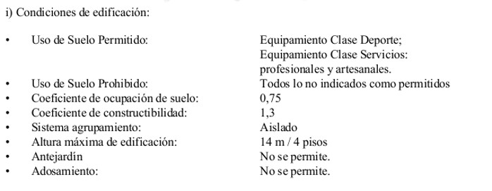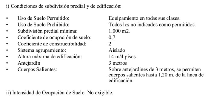 . Usos de Suelo Permitidos: Según lo indicado en el Instrumento de Nivel Superior.