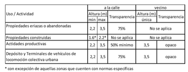 Estas dimensiones se deben respetar en todos los puntos de la línea oficial o de edificación y la línea de solera.