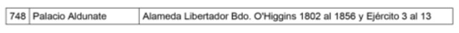 . En la línea 160, reemplácese el texto "Merced 45-50/Alameda Lib. Bdo. O'Higgins 45-47", por el texto "Alameda Libertador Bdo. O'Higgins 45-47 y Merced 50".