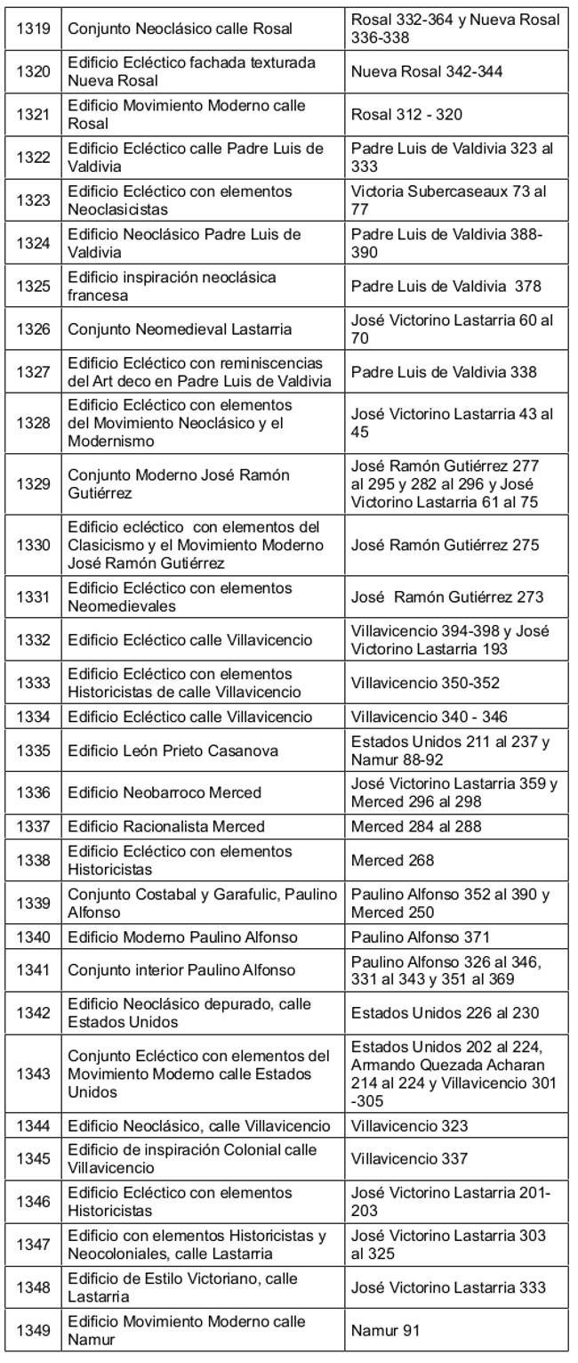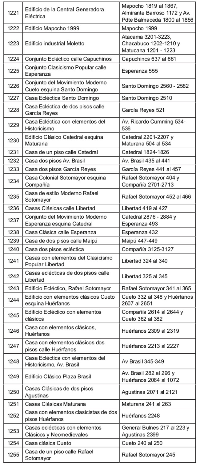 3.8.5. Incorpórense a continuación de la línea 1220, los siguientes nuevos inmuebles de Conservación Histórica: