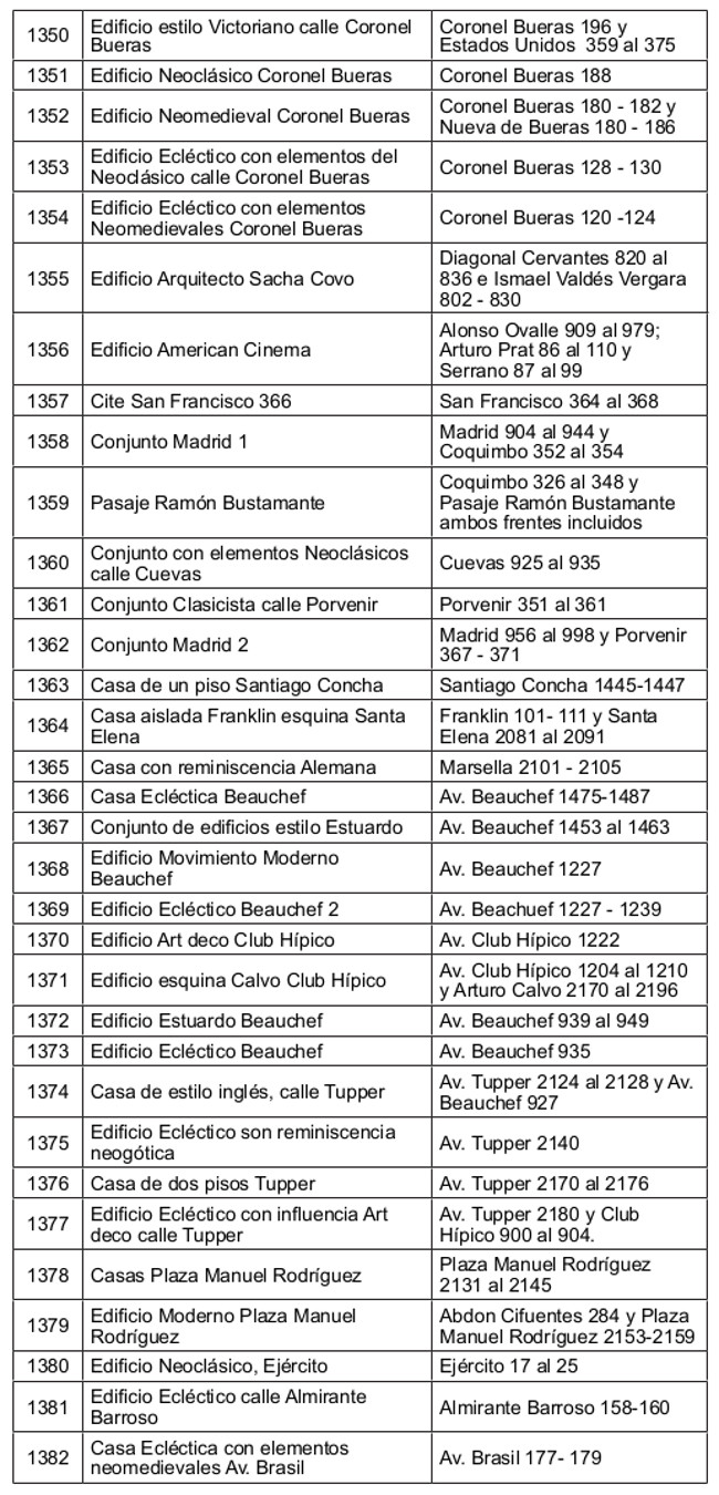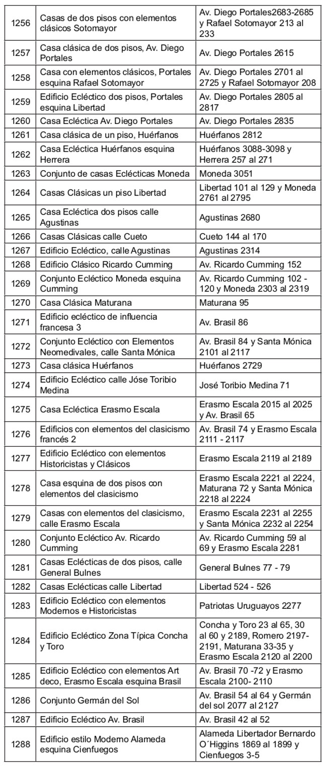 . En la línea 1113, reemplácese el texto "Arturo Prat 1427 al 1433", por "Arturo Prat 1437 al 1449 y San Diego 1438 al 1448".