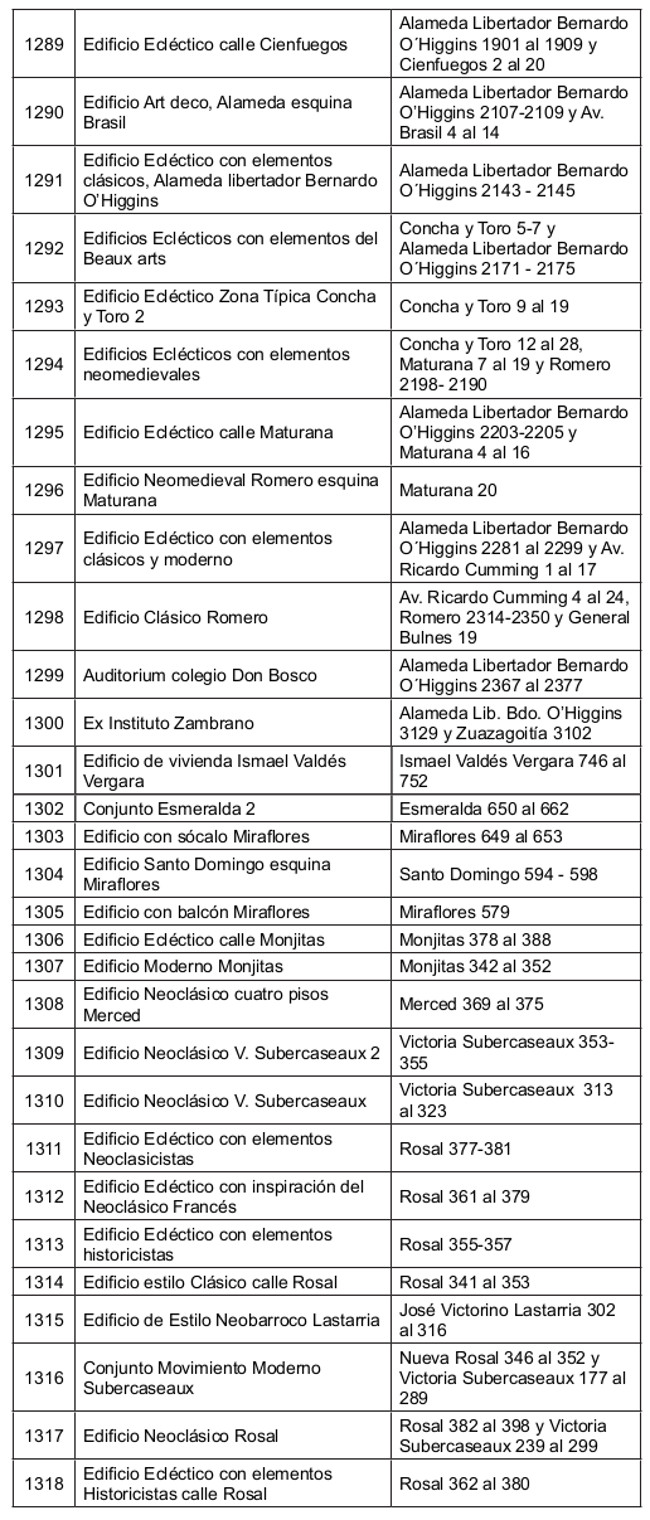 . En la línea 396, reemplácese el texto "Compañía 3006 al 3336/ Maipú 382 al 306 y Huérfanos 3005", por el texto "Maipú 306 al 390, Huérfanos 3001-3005 y Compañía 3006 al 3036".
