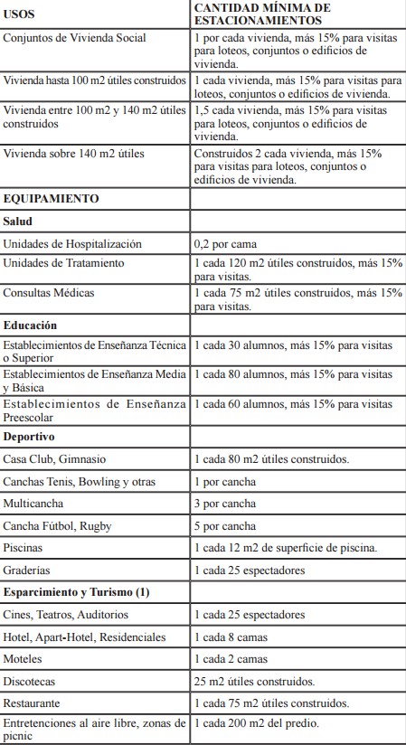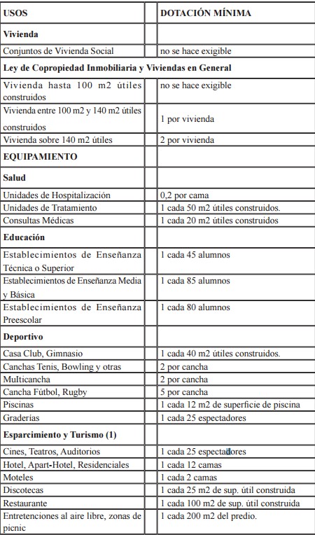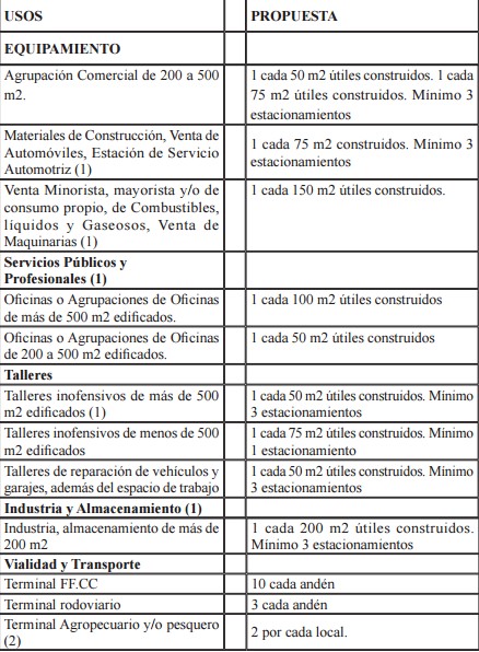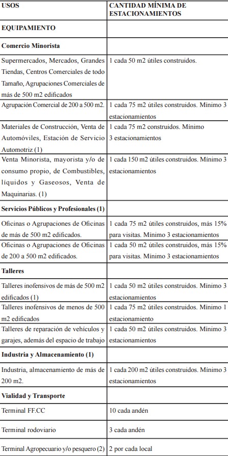(1) Adicionalmente se consultará estacionamientos de buses, camiones u otros similares, según los siguientes tramos de superficie útil construida en el proyecto: