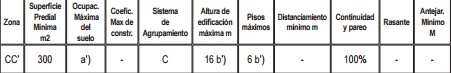 . Reemplácese en cuadro de Zonas Consolidadas, en fila CC, en la columna correspondiente a superficie predial mínima m2, la expresión "300" por la siguiente nueva expresión "210".
