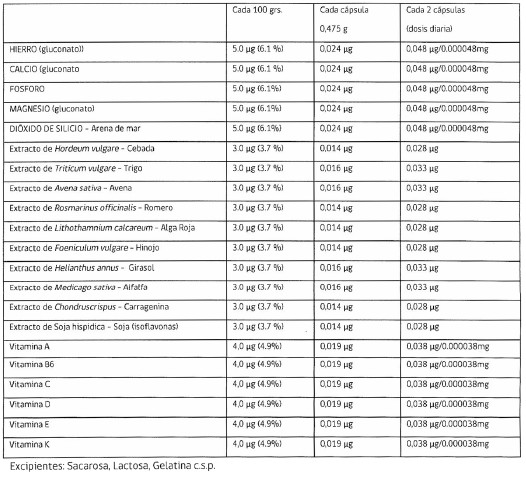 d) Al producto se le atribuyen propiedades terapéuticas relacionadas con el tratamiento de la osteoporosis, sus ingredientes de vegetales y algas a pesar de estar en dosis subterapéutica no están en las formas usadas en alimento;