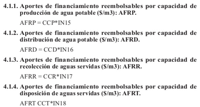Los aportes de financiamiento reembolsables a cobrar al interesado corresponderán al valor resultante de aplicar las fórmulas respectivas, definidas en el punto 4.1. Dichos aportes son los siguientes:
