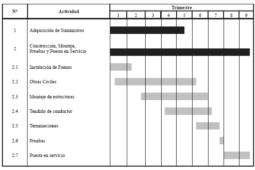 Artículo 11.- El plazo de construcción desde el inicio de los trabajos hasta la terminación total de las obras será de veintiséis meses, iniciándose a los cinco días hábiles contados desde la fecha de reducción a escritura pública del decreto que otorgue la concesión eléctrica. Los plazos de las obras por etapas y secciones, se detallan a continuación: