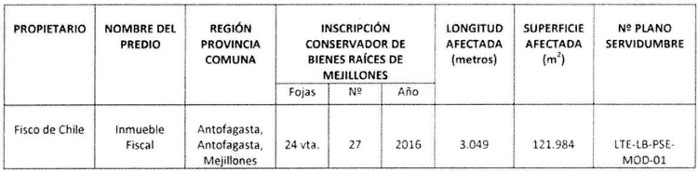 Artículo 7°.- Constitúyase de acuerdo con lo que sobre el particular establece la Ley General de Servicios Eléctricos, la servidumbre para el tendido de la línea de transmisión señalada en el artículo 1° del presente decreto, en el predio que se indica a continuación: