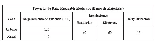a) Reemplazase la tabla denominada "Asistencia Técnica Proyectos con Daño Moderado (U.F.)", por la siguiente:
