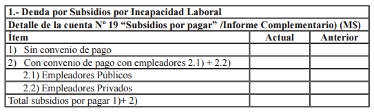 La isapre deberá reportar mensualmente la información sobre la distribución del Ítem Nº 19, del Informe Complementario sobre el detalle de los subsidios por incapacidad laboral adeudados, de acuerdo al siguiente detalle: