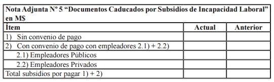 La información deberá remitirse en una copia junto con el Informe Complementario, además de completar el formulario disponible en la extranet. 3. Prescripciones Contables de subsidios Se deberá incorporar mensualmente un detalle de los subsidios por incapacidad laboral que han sido prescritos contablemente independientemente del estado o fuente de la información (subsidios por pagar o documentos caducados) de acuerdo al siguiente detalle: