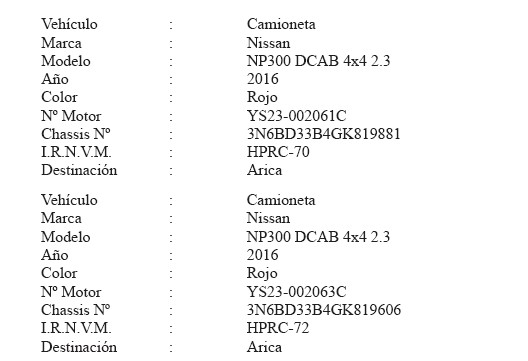 El numeral 3° del Decreto 165 Exento, Hacienda, publicado el 14.07.2023, modifica la presente norma en el sentido de dejar sin efecto la autorización otorgada por la presente norma al Vehículo Camioneta, marca Chevrolet, año 2016, placa patente única HSFL-25.