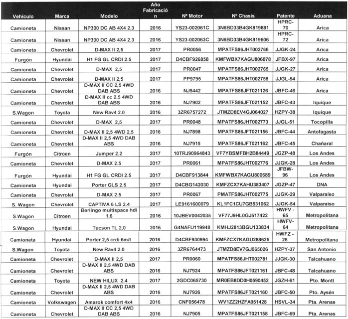 1) Que, el Servicio Nacional de Aduanas ha renovado vehículos asignados al cumplimiento de sus funciones.