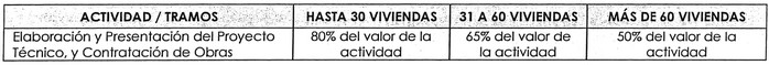 Finalmente, para aplicar la figura de vivienda tipo para el programa de habitabilidad rural, la EGR deberá desarrollar los mismos servicios señalados en el artículo 2°, numeral 3 de esta resolución. El monto a pagar por tales servicios corresponde al señalado en el artículo 3°, numeral 1.2 del presente documento. Tratándose de la actividad Elaboración y Presentación del Proyecto Técnico y Contratación de Obras, los honorarios a pagar tendrán la siguiente variación: