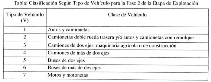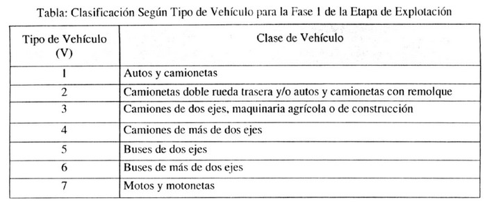 Para la Fase 1 de la Etapa de Explotación, se mantendrá la Tecnología de Cobro de Peaje Manual, manteniendo la actual Plaza de Peaje y su clasificación vigente, según tipo de vehículo. La clasificación de los vehículos será de acuerdo a lo indicado en la siguiente Tabla: