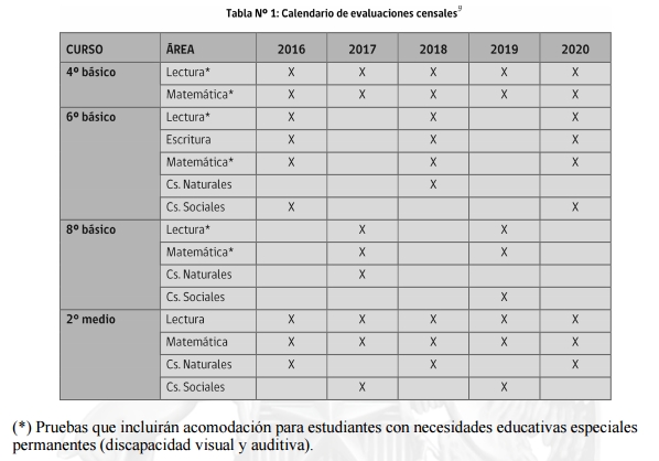 (3) La evaluación es externa a los establecimientos cuando se trata del SIMCE, y externa al país cuando se trata de evaluaciones internacionales.