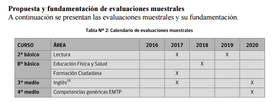 Agencia de Calidad de la Educación de Chile (2015). Propuesta Sistema Nacional de Evaluación de la Calidad de la Educación Escolar. Planes de Evaluación de Aprendizajes, 2016-2020. Santiago: Autor.